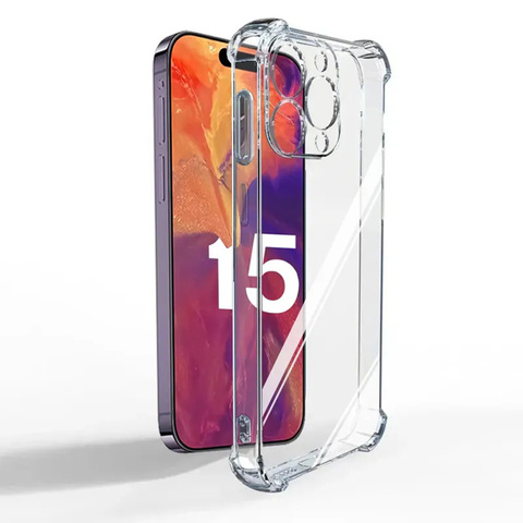 جراب هاتف شفاف رخيص مقاوم للصدمات من مادة TPU الناعمة لهاتف آيفون 15، 15 برو، 15 بلس، 15 برو ماكس، 13 برو، XR - يدعم الشحن اللاسلكي